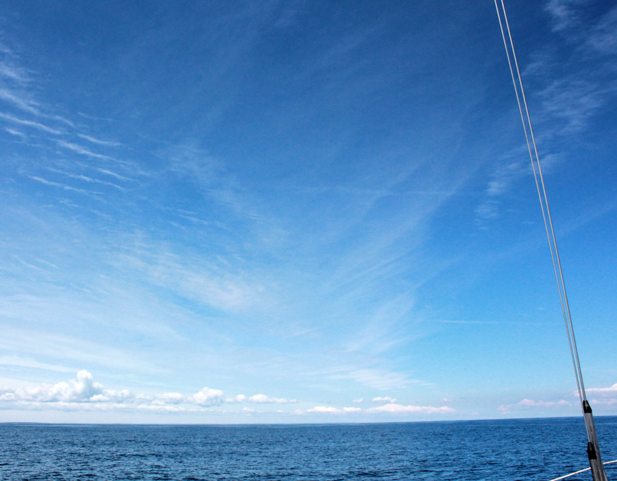 Mit zehn Knoten spült uns die Strömung aus dem Wald in die Cabot Strait. Ich sehe nur Himmel und Meer. Doch Wikipedia sieht mehr. Vor fünfhundertfünfzehn Jahren passierte der namensgebende Seefahrer diese Straße und vor siebzig Jahren versenkte ein deutsches U-Boot 136 Zivilisten innerhalb von fünf Minuten. Natürlich gibt es immer den großen Zusammenhang. Und auch deshalb ist das Meer immer anders.