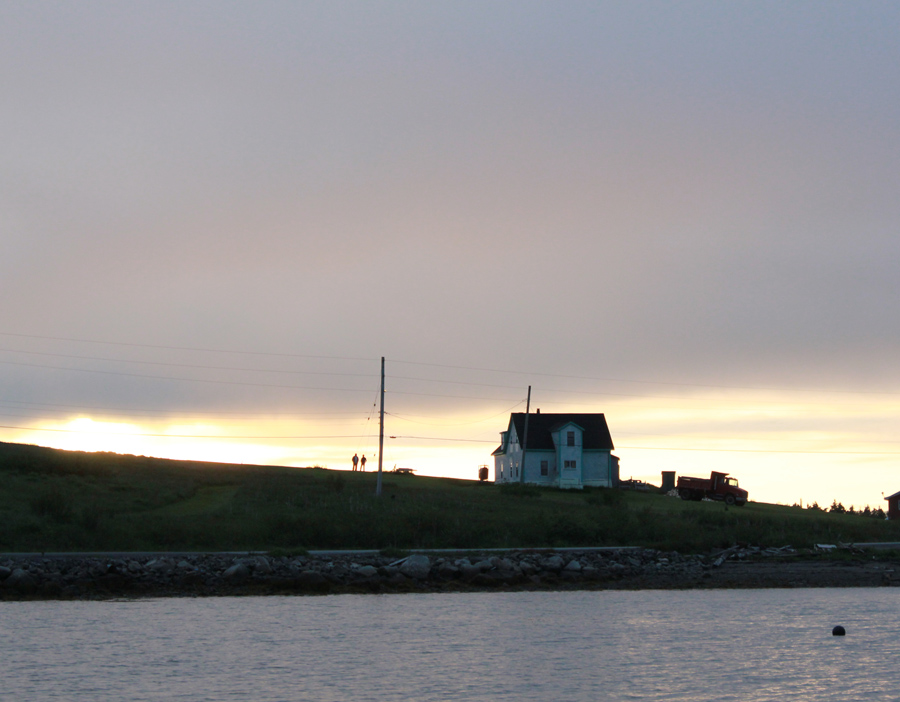 Sechs Stunden später. Richtig Tag wird es heute nicht. Neufundländisches Sommerwetter. Von Hagel und Sturm bleibt man verschont. Von Sonne auch. Wir laufen lange schon wieder unter Maschine. Das Segel hängt pro forma oder in Hoffnung schlaff am Mast. Hin und wieder eine Möwe, die nicht schreit, da sie keine Selbstgespräche führen möchte.
