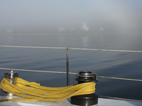Halifax wird achtern kleiner und um uns ist ein Schauspiel in Grau mit permanentem Szenenwechsel. Nebel, kein Wind, wenig Wind, viel Wind, von hier, von dort, auch mal Sonne, selbstverständlich Regen. Wir hatten uns für's Küstensegeln entschieden und sind nicht raus zu der Titanic, die seit fast genau hundert Jahren ein paar Hundert Meilen östlich liegt.